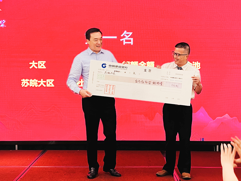 林建雄董事長為銷售大區(qū)頒發(fā)獎金