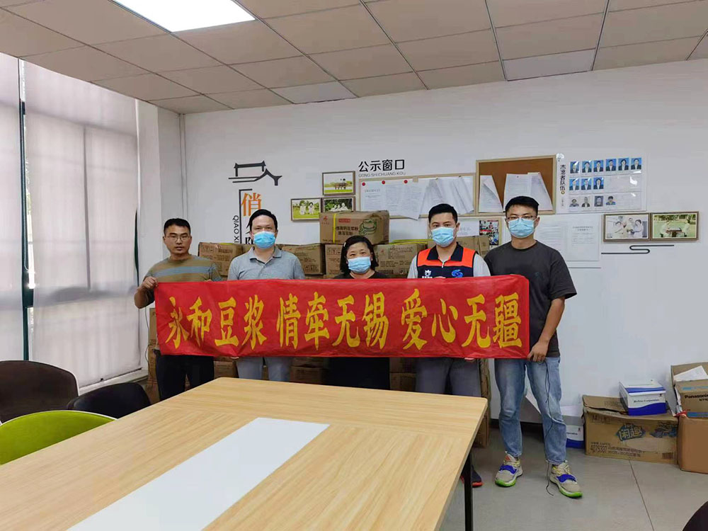 疫情來勢洶洶,給防控一線的工作人員加重了負(fù)擔(dān)。為支援一線抗疫,永和豆?jié){積極發(fā)揮行業(yè)優(yōu)勢,調(diào)配資源,8月1日-8月2日,共計210箱豆?jié){粉陸續(xù)送抵無錫抗疫一線,盡己所能解決了燃眉之急,傳遞了大愛與溫暖。無錫市慈善總會孫曼旗部長、無錫市新吳區(qū)敘豐家園社區(qū)華裕東書記、貢湖護理院楊仲茂院長、高速交警大隊郭嘉大隊長、新瑞醫(yī)院袁錦祥書記等領(lǐng)導(dǎo)出席了捐贈儀式,感謝永和食品公司對于抗疫工作的支持。