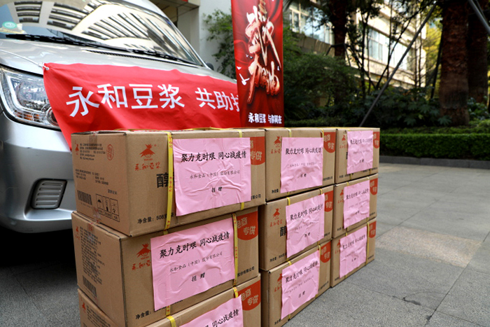 4月1日,在慈濟慈善基金會的協(xié)助下,永和食品(中國)股份有限公司捐贈的110箱共計2200袋永和豆?jié){物資,順利到達(dá)復(fù)旦大學(xué)附屬華山醫(yī)院,這批物資將在近日陸續(xù)發(fā)放到醫(yī)護(hù)工作人員手中。