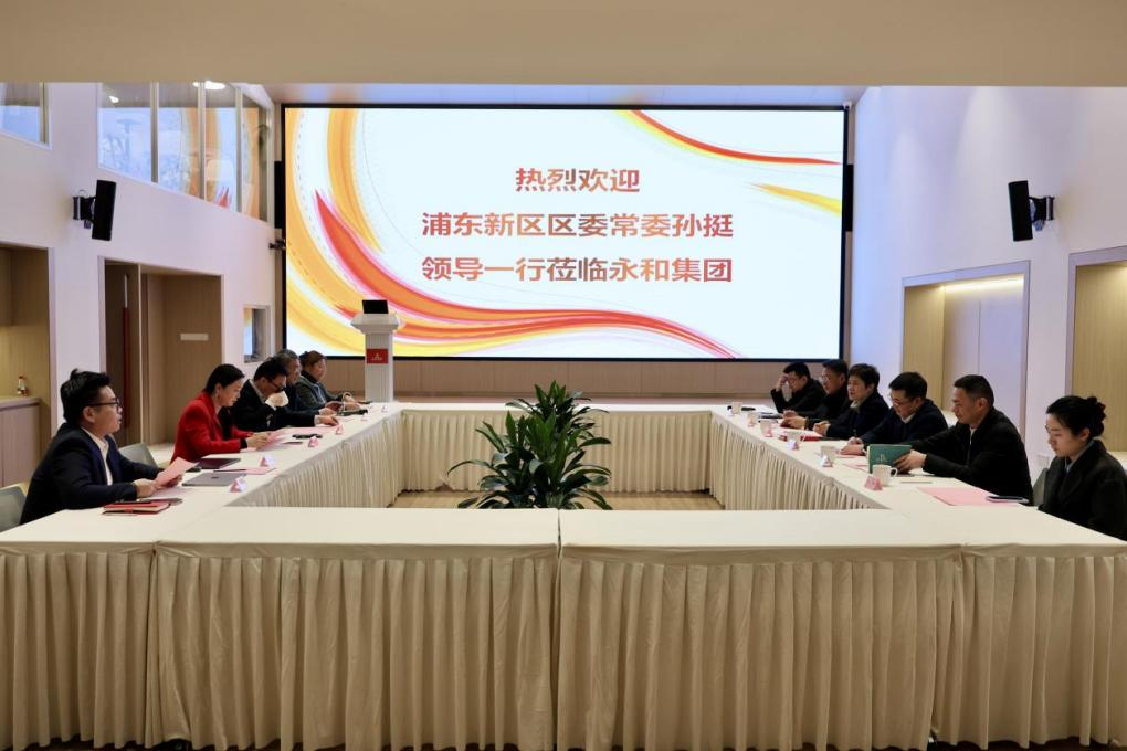 2026 年 1 月 4 日,浦東新區(qū)區(qū)委常委孫挺一行蒞臨永和集團總部,開展調(diào)研走訪并召開座談會。區(qū)臺辦副主任達明宗、區(qū)臺辦臺務(wù)處處長龔云卿等相關(guān)領(lǐng)導,永和集團董事長林建雄、高管團隊及市臺協(xié)浦工委副主委黃涓喻等共同參與,圍繞臺企發(fā)展、兩岸青年創(chuàng)業(yè)、文化交流等議題深入交流,共繪合作藍圖。