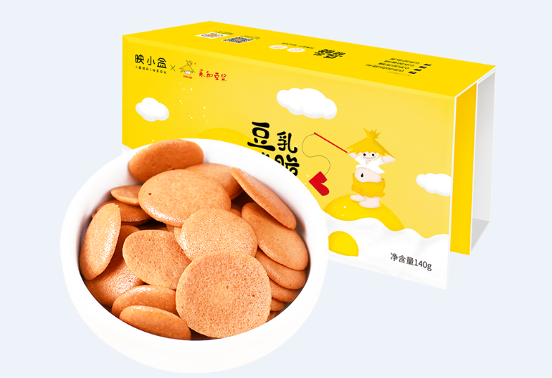 這款豆乳脆脆,由映小盒甜品研究院進行長達180天的口感鉆研,并融入了歷經16道工序的永和豆?jié){原磨豆粉,為其注入“靈魂”。小小的豆乳餅干,輕薄酥脆,一口一個不掉渣,細細咀嚼,濃郁的豆香在唇齒間縈繞,讓你越吃越上癮。