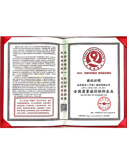 20199 月永和食品(中國)股份有限公司榮獲2019全國質(zhì)量誠信標(biāo)桿典型企業(yè) -