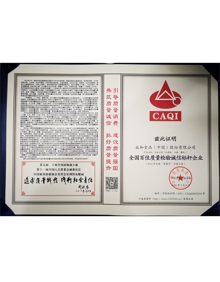 20209 月永和食品(股份)有限公司榮獲全國百佳質(zhì)量檢驗誠信標(biāo)桿企業(yè)稱號 -