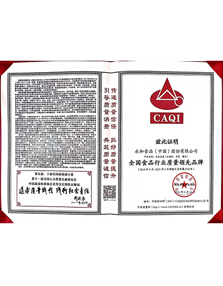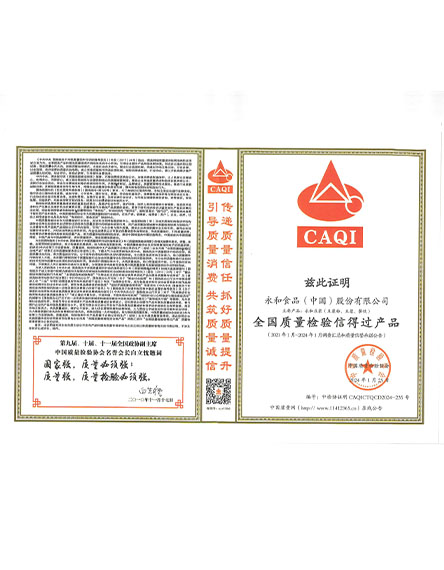 20232 月永和食品(中國)股份有限公司榮獲全國質(zhì)量檢驗信得過產(chǎn)品 -