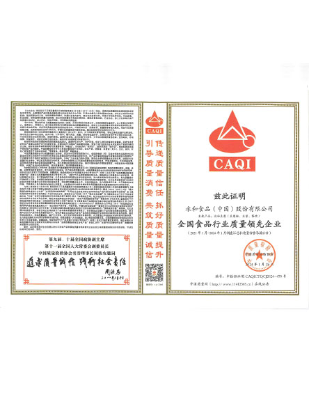 20193 月永和食品(中國)股份有限公司產(chǎn)品榮獲全國質(zhì)量穩(wěn)定檢驗合格產(chǎn)品 -